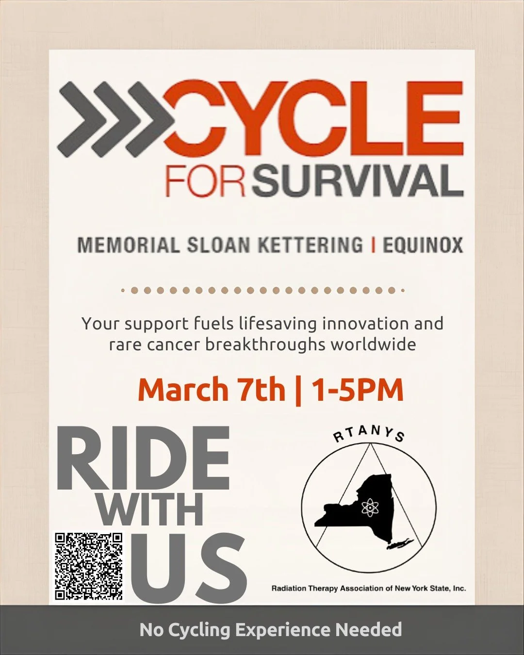 RTANYS is proud to form a Cycle for Survival team in support of groundbreaking research for rare and understudied cancers. Cycle for Survival funds innovative research that helps accelerate new treatments and improve outcomes for patients facing rare cancer diagnoses. As radiation therapy professionals, we see the impact of cancer every day—and by riding, donating, or supporting our team, we’re turning our commitment to patient care into action.