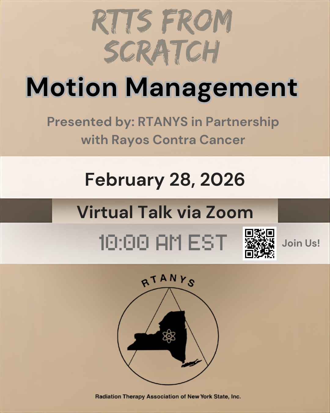 Please join us for a free virtual CE event on “The History and Future of Radiation Oncology in Veterinary Medicine” by RTANYS Treasurer Shivani Narayanan, RT(T), at noon EST on Thursday, March 16, 2023. To earn 1CE through the ASRT, individuals must RSVP using the form below and enter their name in the chat upon arrival to the event. Zoom details will be emailed on the day of the event.